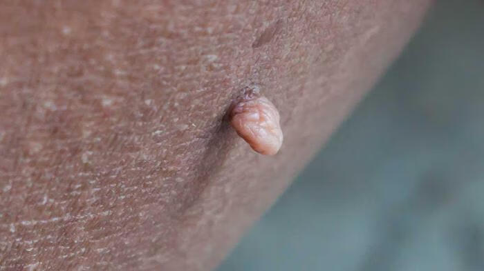 皮赘,也称软纤维瘤,是一种皮肤增生形成的小突起,容易在中年以后出现,对人健康无害。可做激光治疗去除。