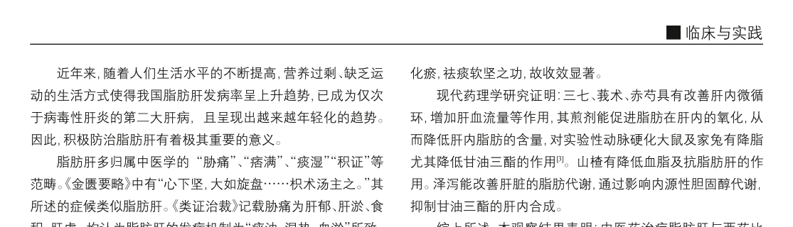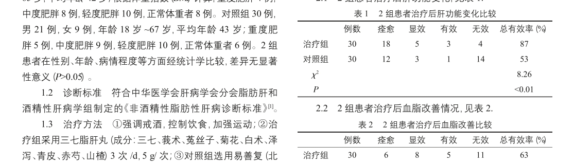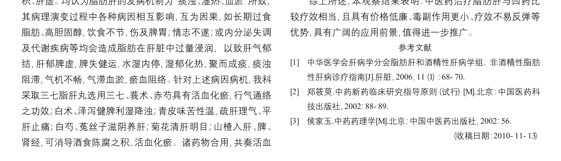 文章 三七脂肝丸治疗非酒精性脂肪肝肝功能异常59例