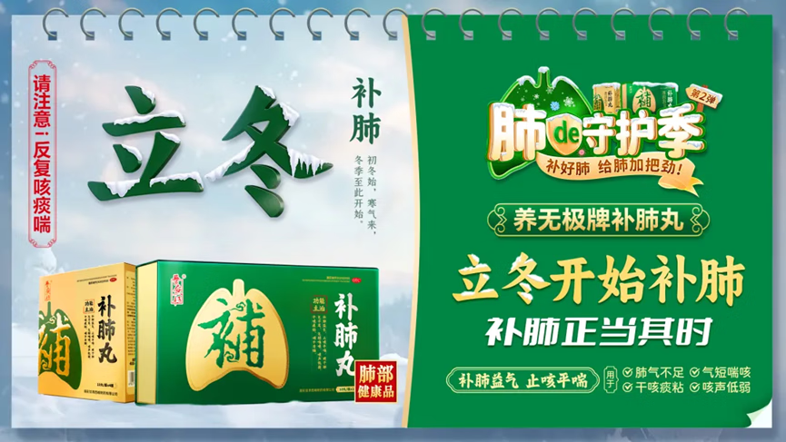 在今年立冬之际,补肺丸与央视频联合发布立冬科普系列公益片,总台主持人海霞、朱迅、三甲医院医师共同发起“ 立冬开始补肺 补肺正当其时 ”全民行动公益号召。