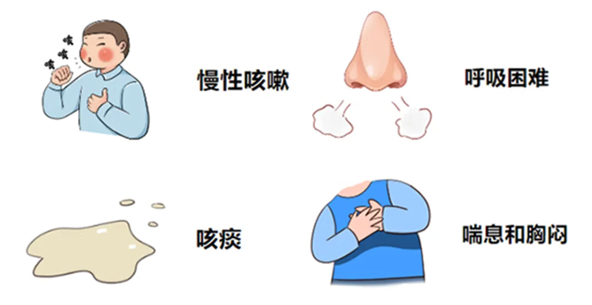 可由早期的慢性咳嗽、老慢支、肺气肿等发展而成,如不及时干预治疗,不仅导致肺功能越来越差,咳痰喘症状反复加重,还会引发肺心病或伴发肺部肿瘤、心血管疾病等全身病变,影响患者的生存质量,严重的时候丧失劳动力甚至呼吸衰竭、危及生命。